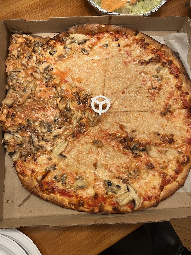 Tomato sauce, mozzarella, peppers, kalamata olives, red onions, broccoli, mushrooms and spinach.